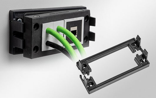 借助 IMAS-CONNECT? 適配器穿芯系統(tǒng),您可輕松將可分式電纜引入框架用作連接器的單獨接口。 無需為 Keystone 插座或圓形連接器等單獨開孔。這不僅減少了安裝時間,還減少了安裝空間。如果不直接使用預組裝的 Keystone 插座,帶集成密封件的防護蓋能提供可靠的防濺水和防塵保護。