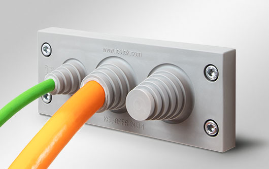 新款 KTMBS 電纜穿芯使得電纜引入變得更輕松、更靈活。 由于穿芯的夾緊區(qū)域增大,因此可以布置和密封更大直徑范圍的電纜。