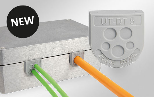 可分式 U 形電纜穿芯,適用于帶或不帶連接器的電纜(線徑范圍為 4 - 11 mm)。 免工具安裝。